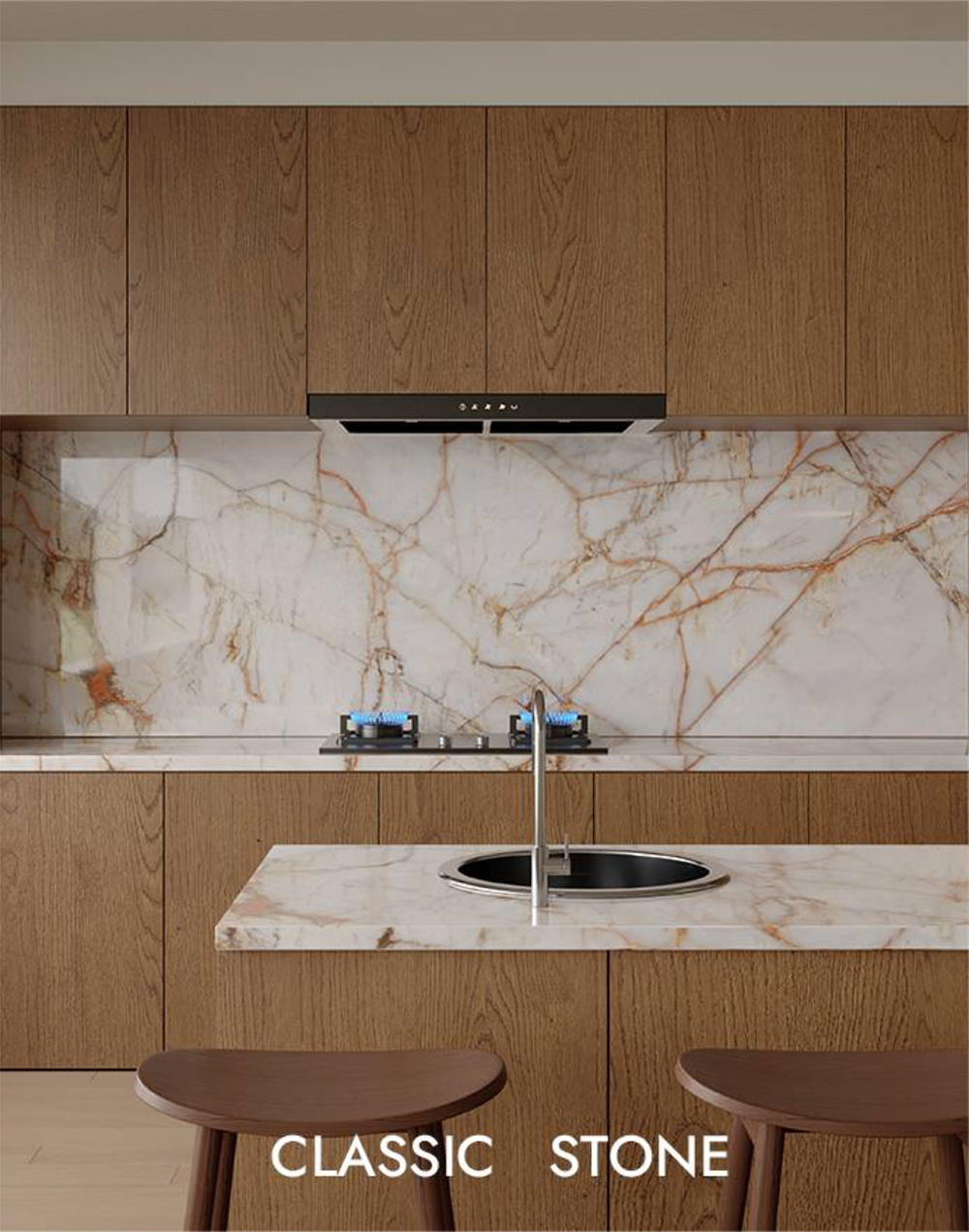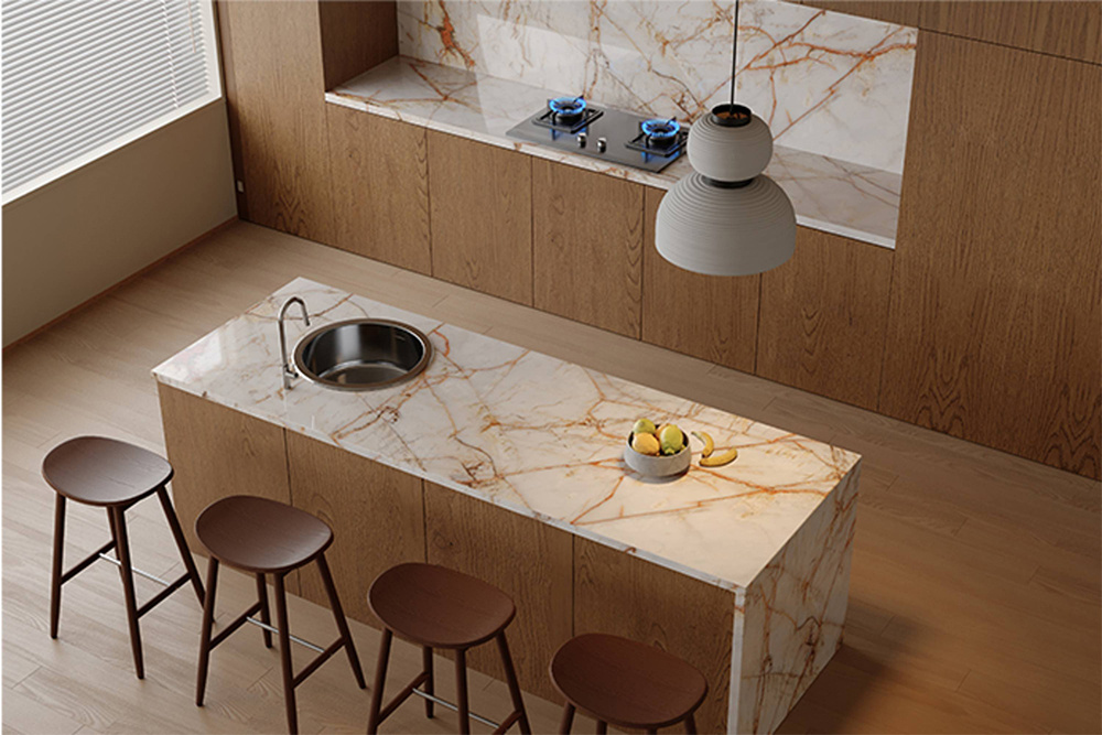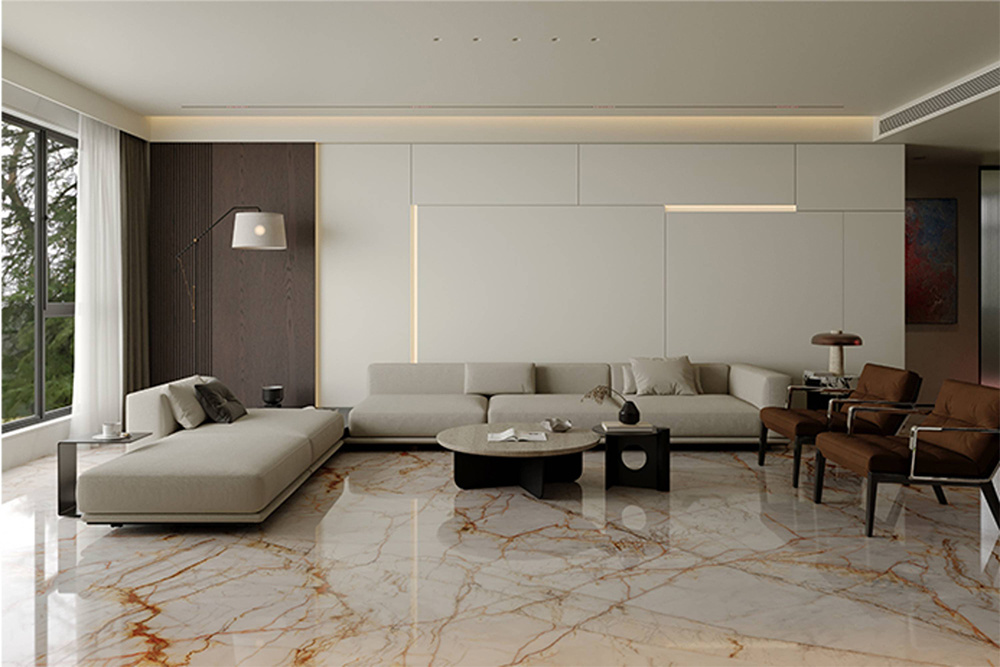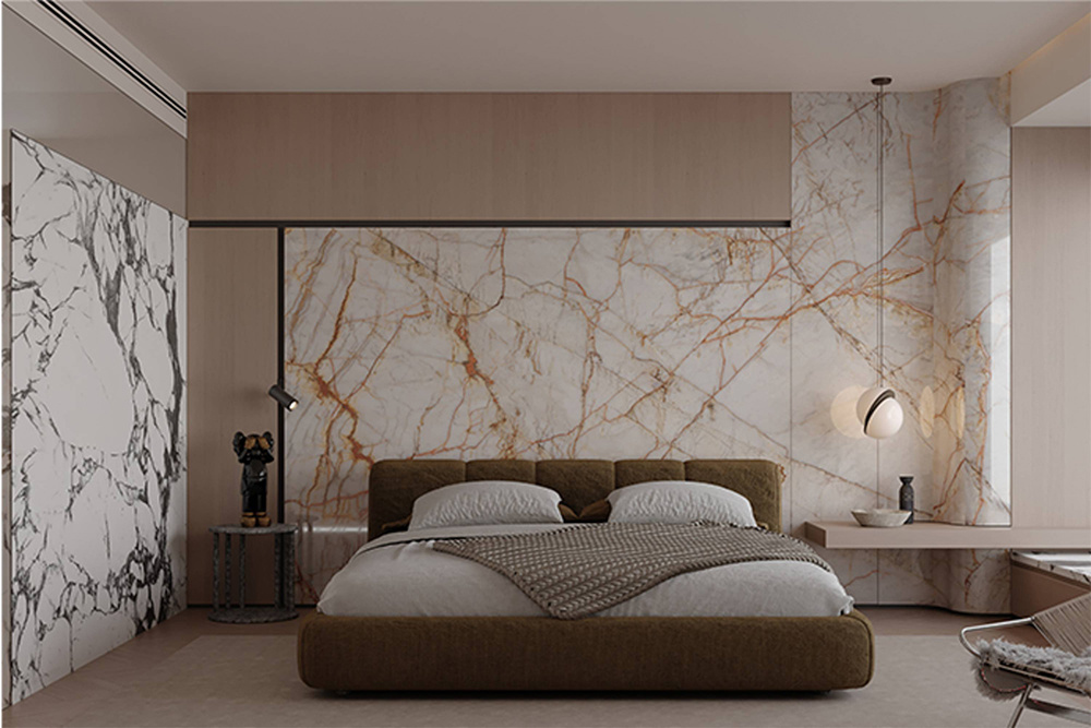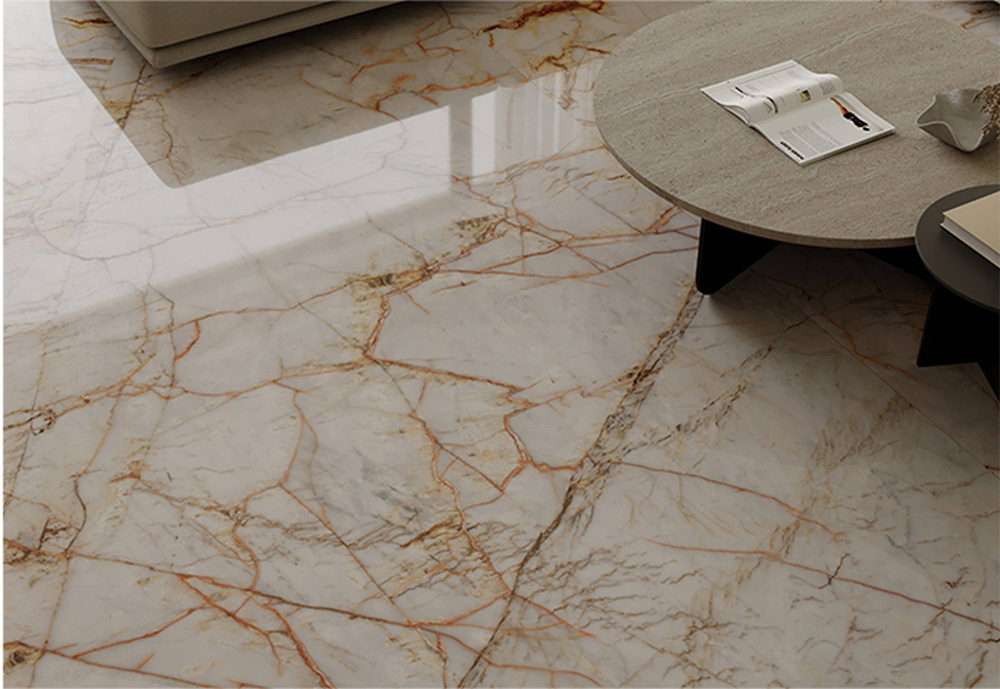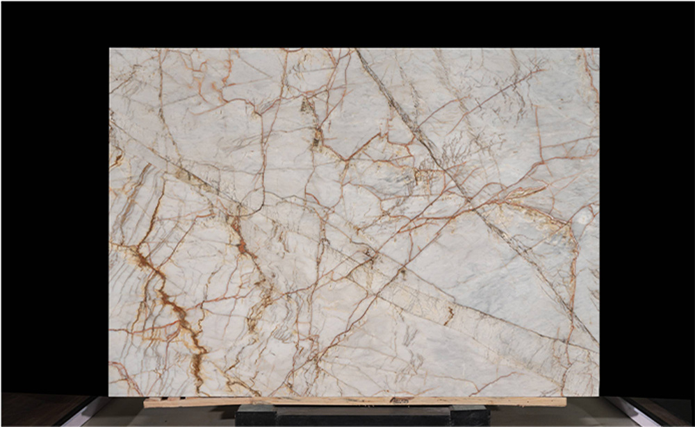 当晨曦的第一缕金线穿透伯罗奔尼撒的云母矿层,便织就了这款充满巴洛克美学的天然石材。象牙白的基底如冰川般纯净,其上纵横交错的金色网纹,似拜占庭宫廷的金丝刺绣。