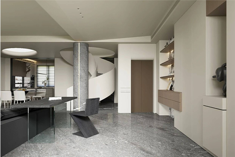 中明度灰基底上分布着流星般的几何纹路,似达芬奇手稿上的透视辅助线,又如布鲁诺宇宙模型中的星轨轨迹--每道纹路都是理性与神性对话的刻痕。