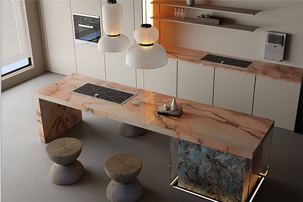 像被揉碎的晚霞浸染了阿尔卑斯雪峰,烟粉与雾霭灰在石面上演一场浪漫的追逐,每一寸都是自然颁发的高级定制证书。