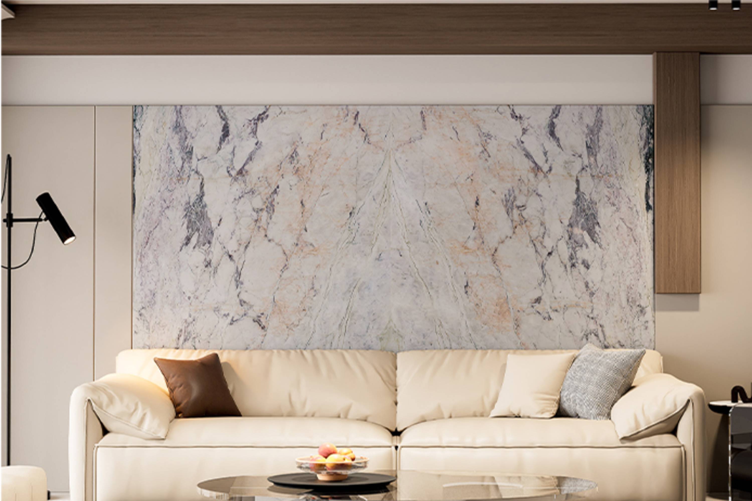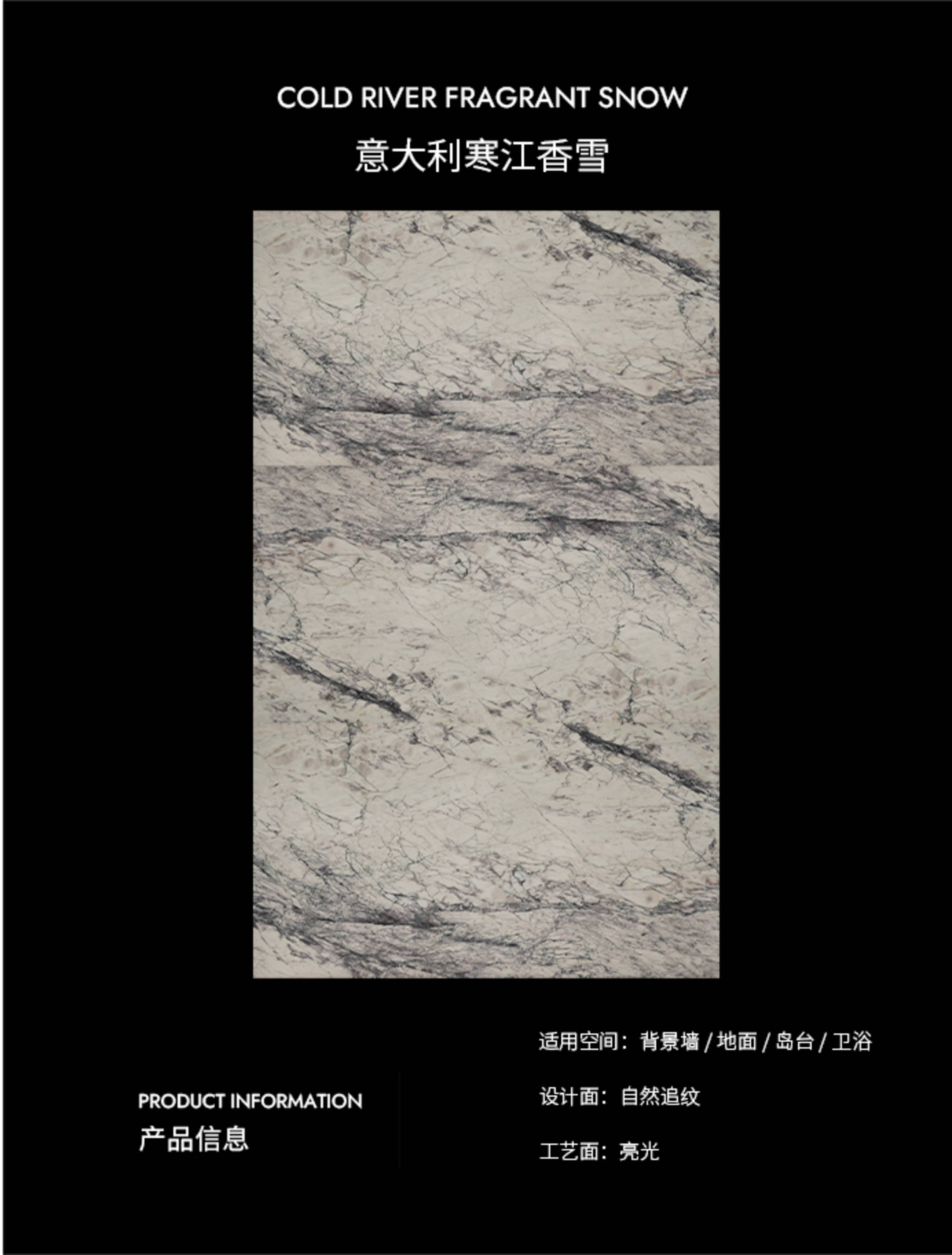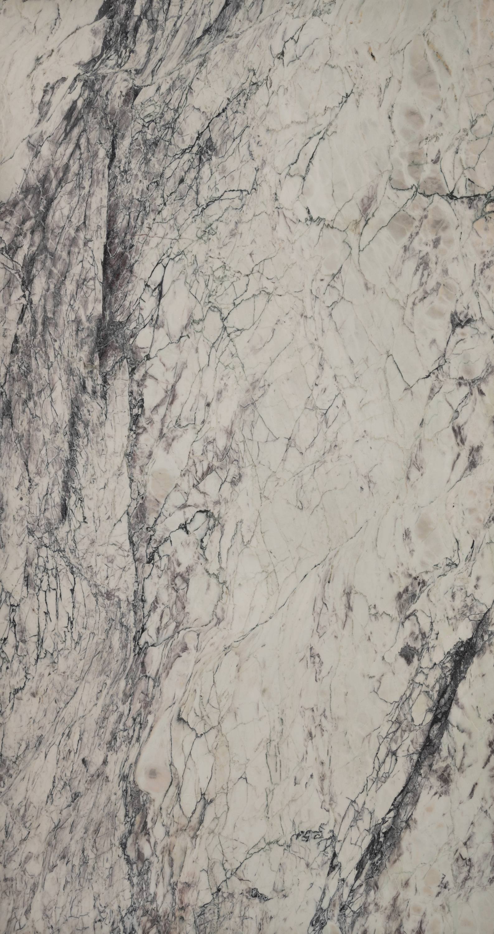冷调象牙白基底上分布着卡拉拉特有的浅灰纹路,似科莫湖面凝结的冰裂纹,又像阿尔卑斯雪线之上风蚀岩的天然肌理。