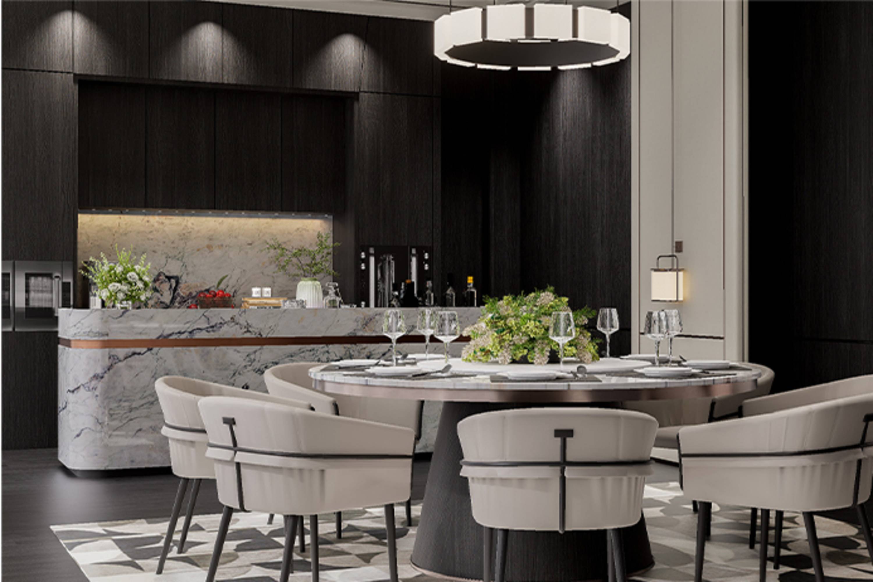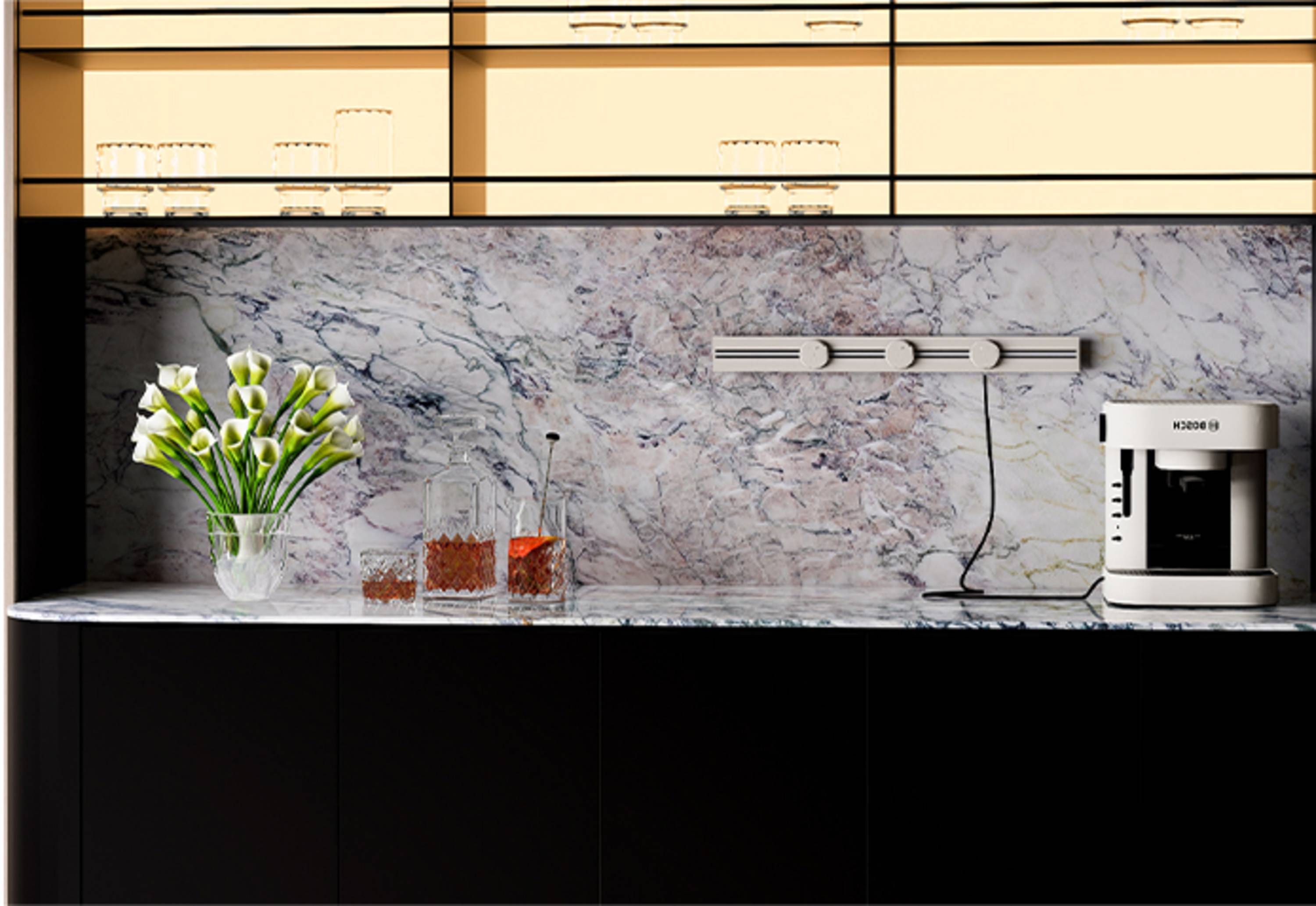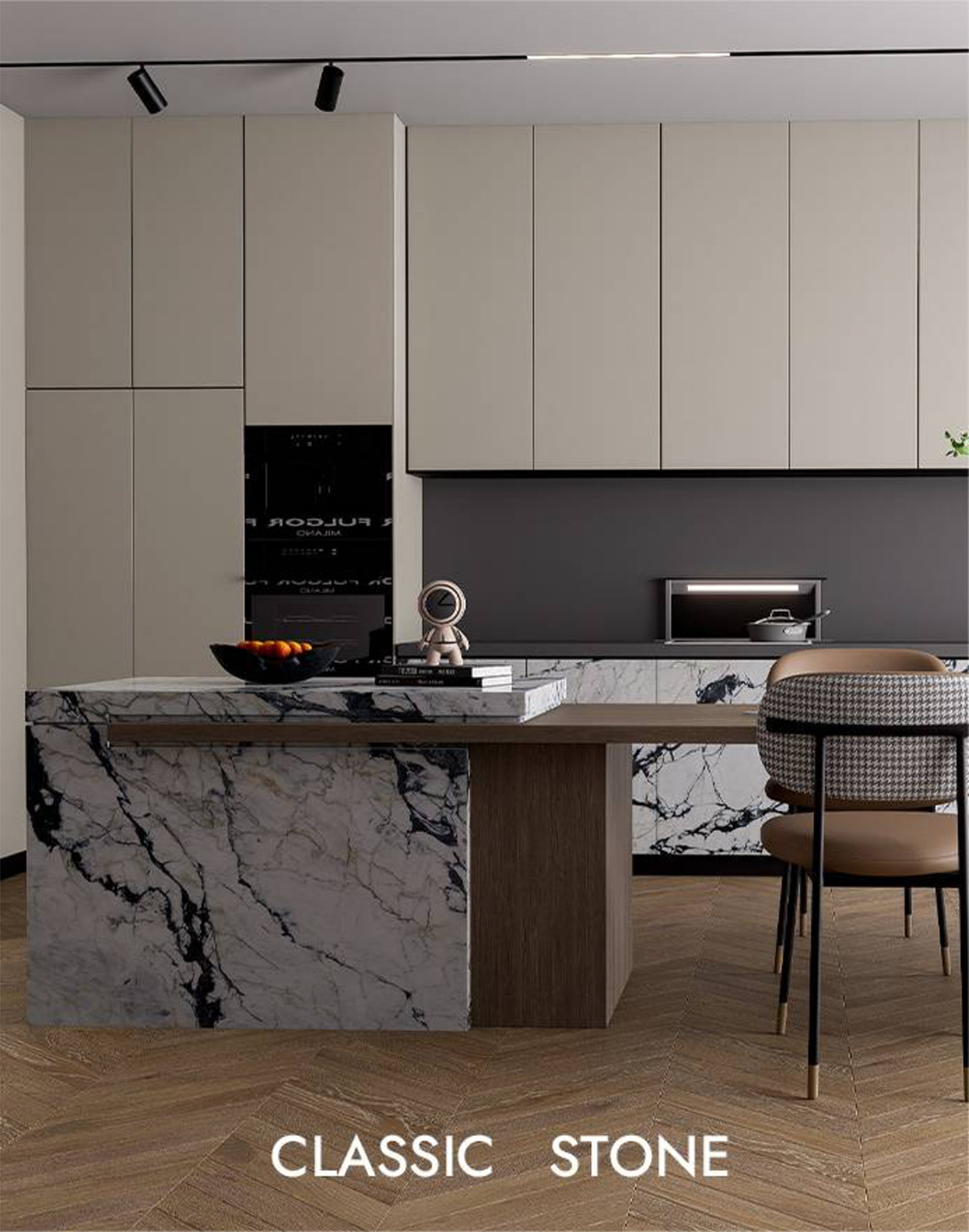 冷调象牙白基底上分布着卡拉拉特有的浅灰纹路,似科莫湖面凝结的冰裂纹,又像阿尔卑斯雪线之上风蚀岩的天然肌理。