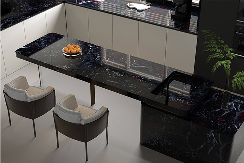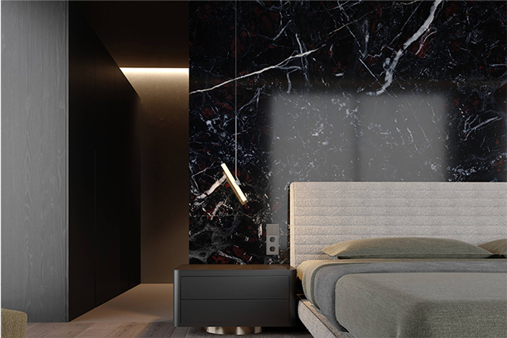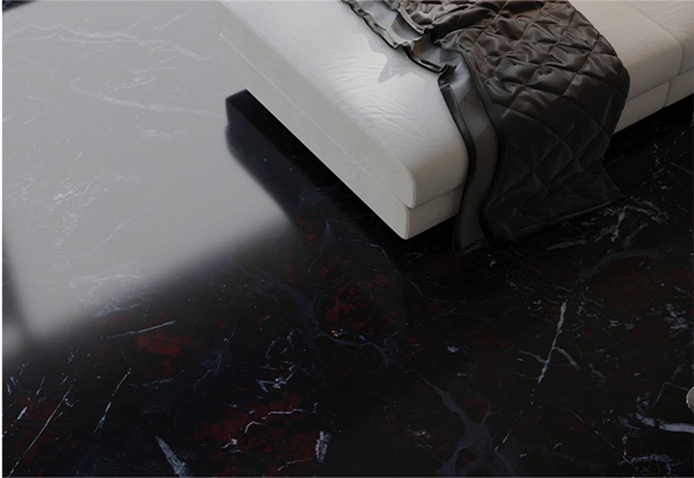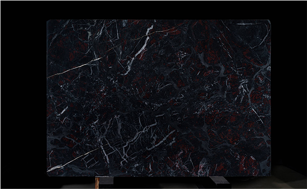 当地心熔岩与远古铁矿在高压中相拥,便淬炼出这款充满戏剧张力的天然石材。幽暗如黑丝绒的基底上,猩红色的网状纹路肆意蔓延,似荆棘丛中怒放的血色玫瑰。