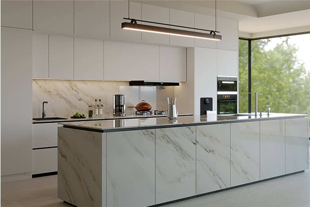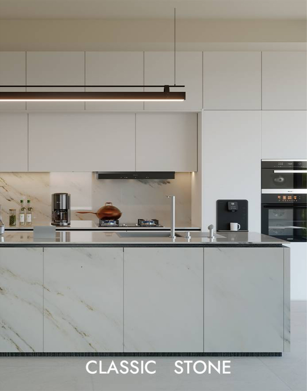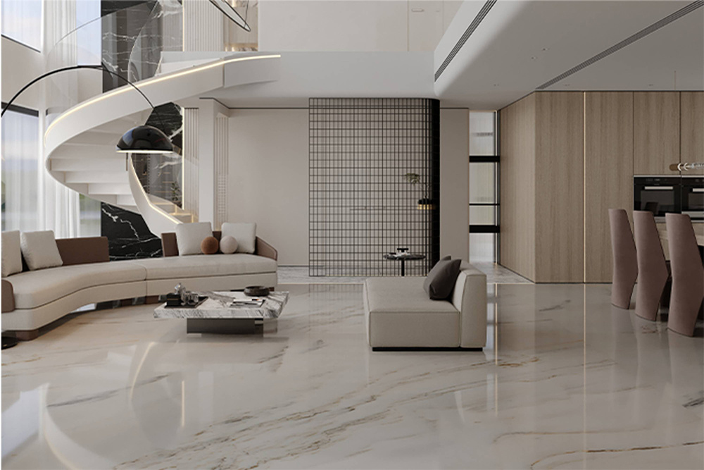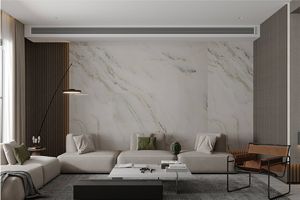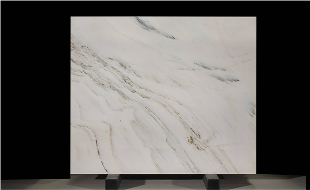 当峨眉云海与青城幽谷在时光中凝固,便幻化出这款雪白优雅的天然山水画作。其上晕染的金色纹路彰显空间贵气,疏密有致的笔触间,彰显东方美学气韵。