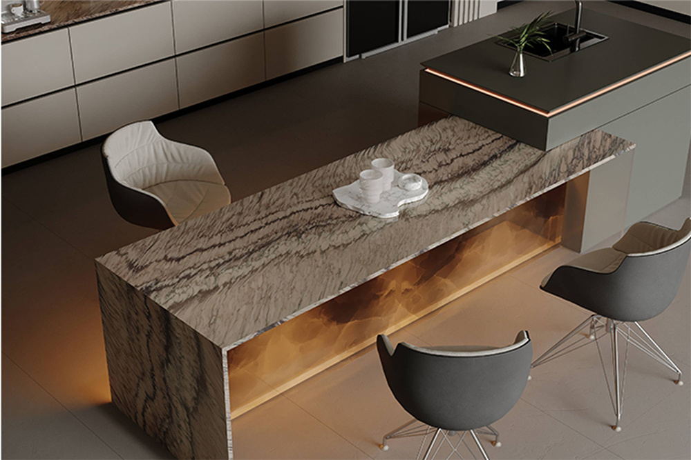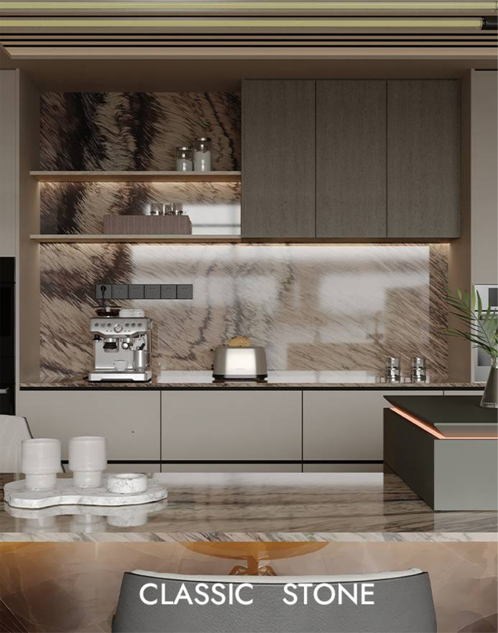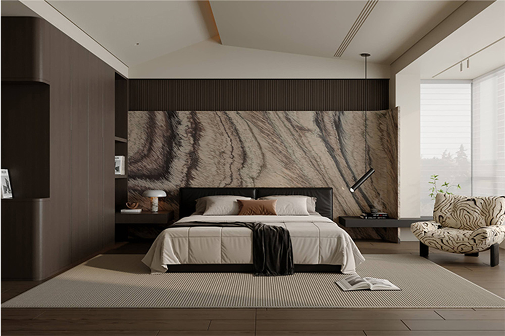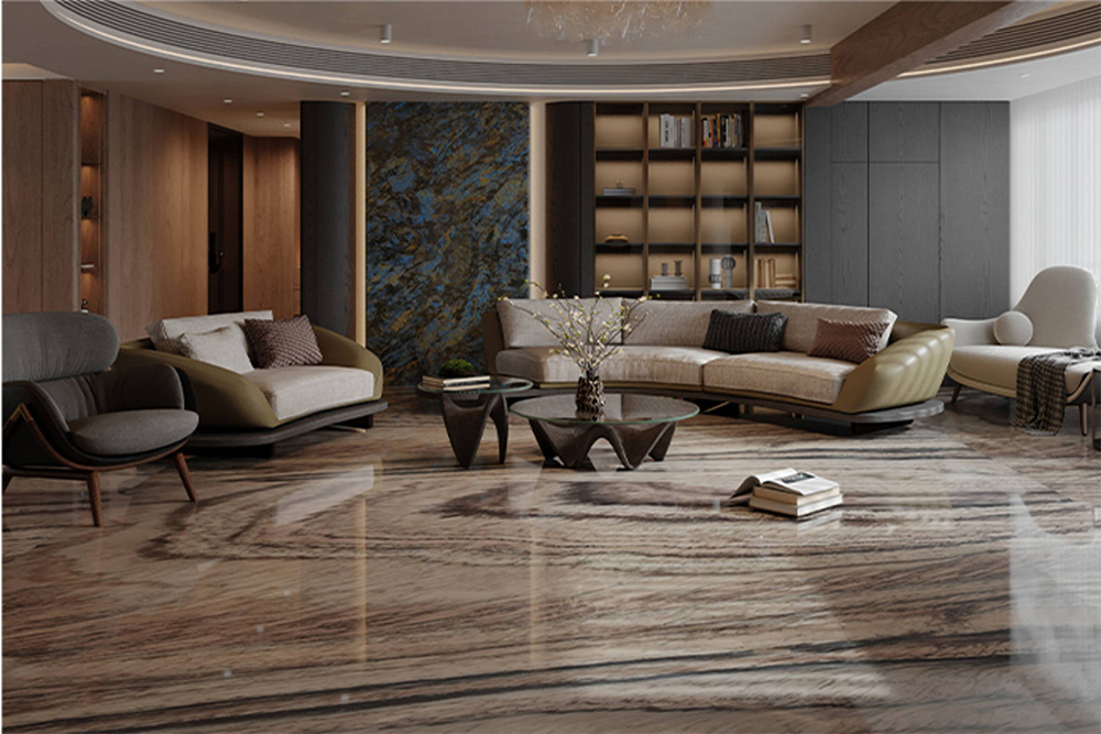暖调象牙白基底上,游走着蜜糖色矿物脉络,像佛罗伦萨老桥上小提琴手即兴挥洒的五线谱。完美适配别墅庭院、艺术画廊与高端民宿。