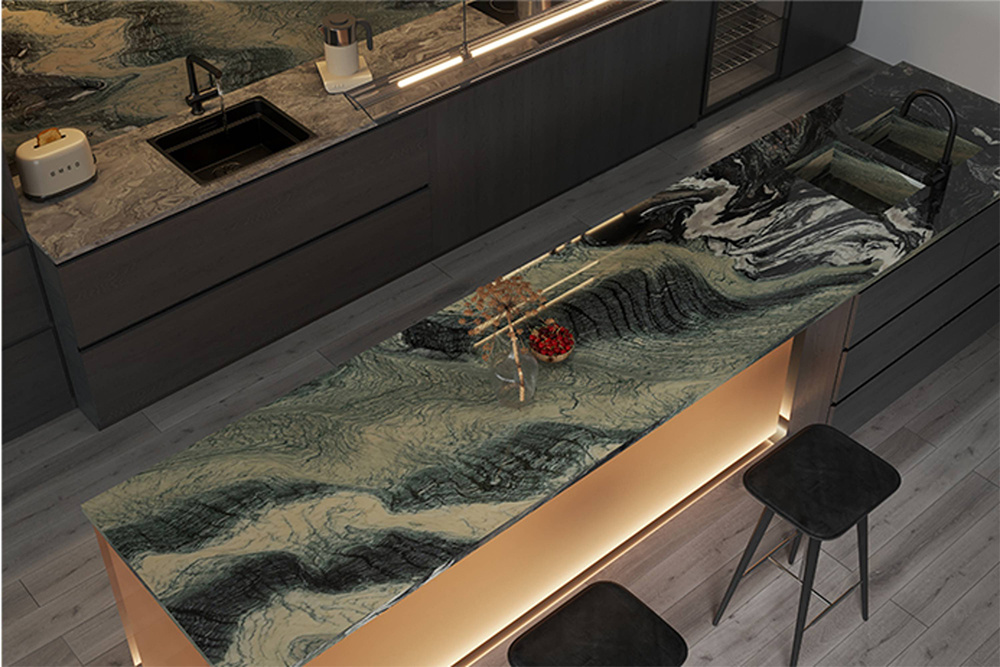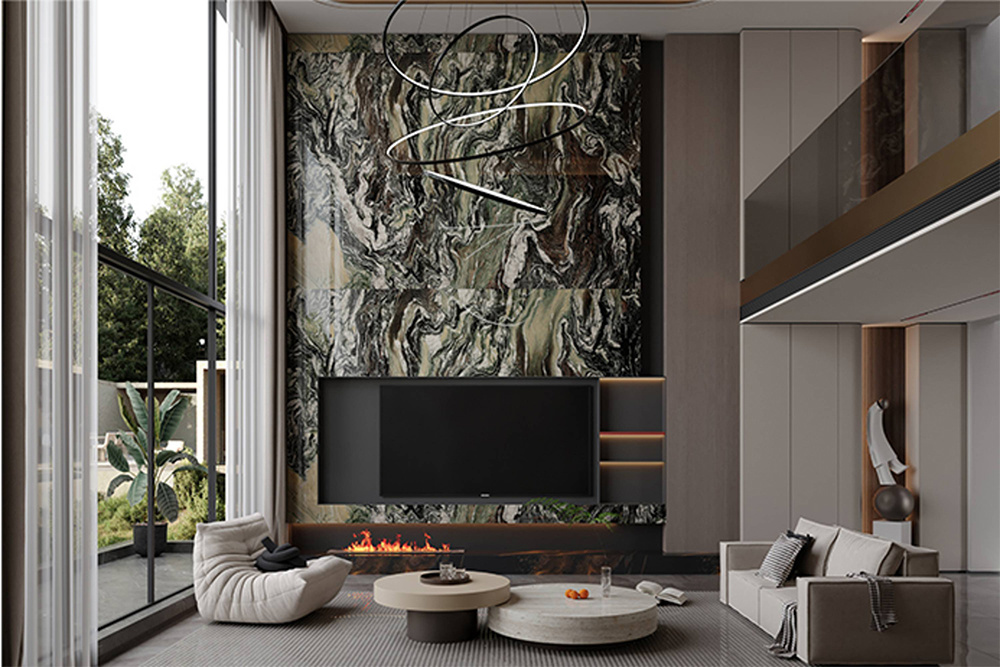 产自意大利的东方美学名作,黛紫色纹路如名家泼墨挥毫,在玉白基底上晕染出层峦叠嶂的意境,时而似黄山云海翻涌,时而又如漓江烟雨朦胧。